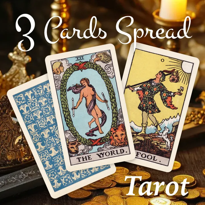 タロット占いのスリーカードスプレッドです。その中でもとくにベーシックな「過去・現在・未来」の占いをおこないます。大アルカナ22枚だけを使ったもので、解釈しやすく、結果を読み取りやすい展開です。